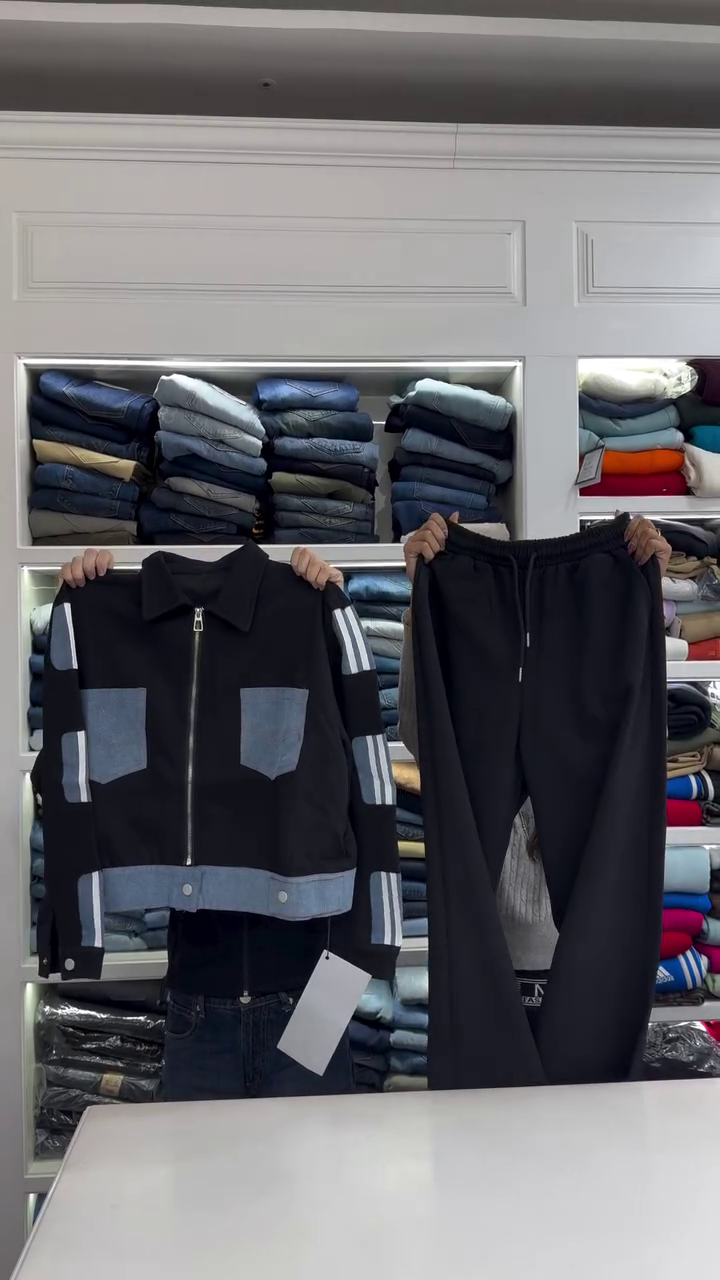 This 🖤 premium black denim-panel jacket & jogger co-ord set is designed to offer a combination of functionality and style, making it a dependable choice for everyday wear. Its overall look is clean and easy to carry, allowing you to maintain a neat appearance without putting in too much effort.