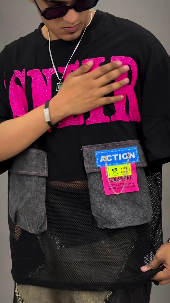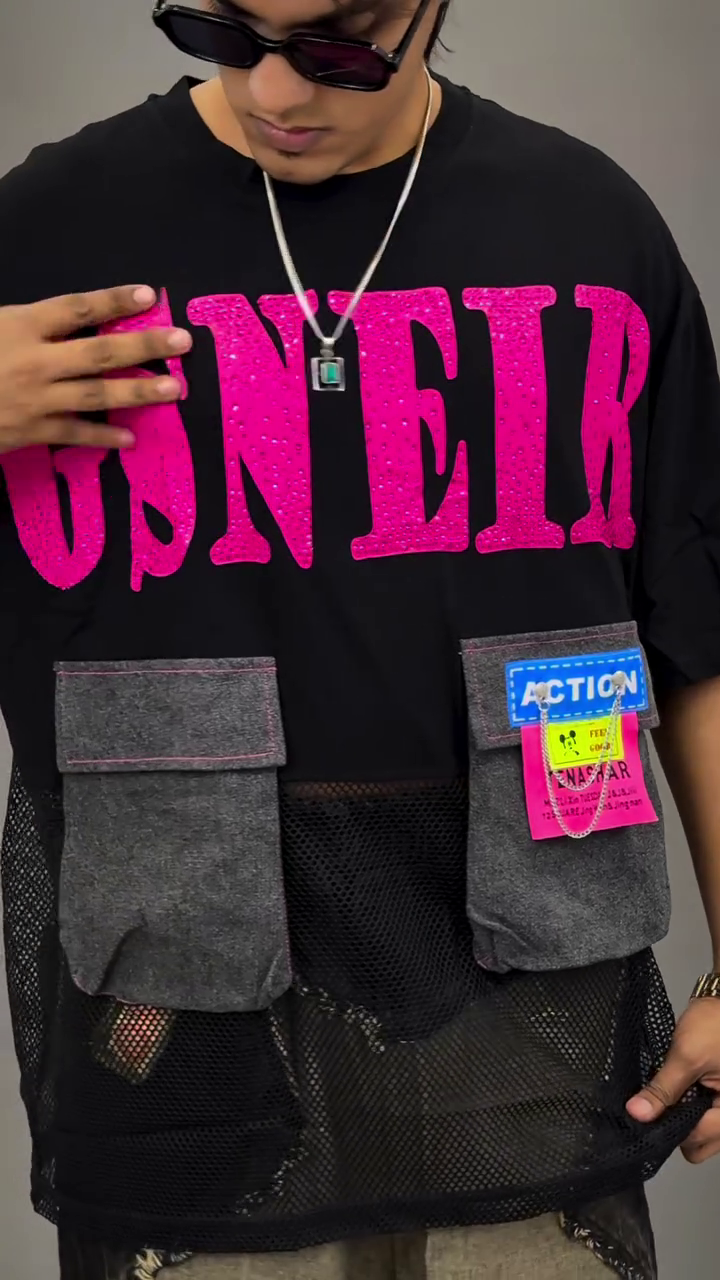 This cargo mesh oversized t-shirt 🖤 is designed to offer a combination of functionality and style, making it a dependable choice for everyday wear. Its overall look is clean and easy to carry, allowing you to maintain a neat appearance without putting in too much effort.