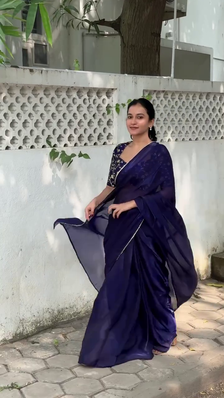 Bring a fresh update to your wardrobe with this elegant navy blue organza saree with embroidered blouse, thoughtfully designed to match everyday comfort with a clean and presentable look. The overall design focuses on keeping things simple yet effective, making it a suitable option for different occasions without feeling overdone.