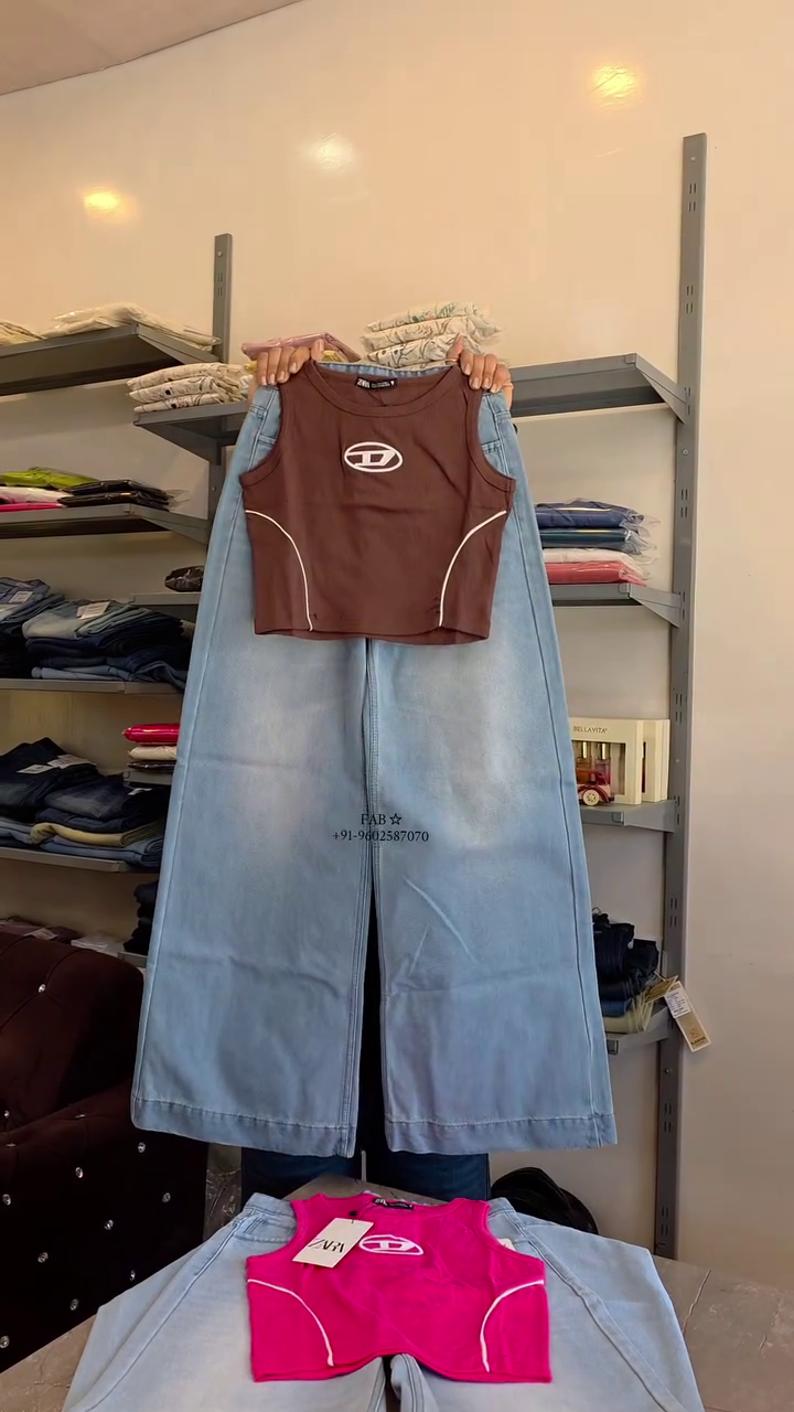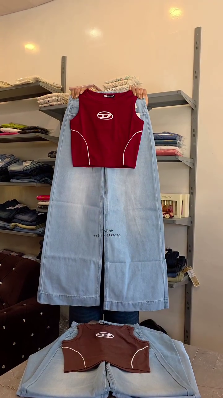 This trendy pink sleeveless crop top with light blue wide-leg jeans is designed to offer a combination of functionality and style, making it a dependable choice for everyday wear. Its overall look is clean and easy to carry, allowing you to maintain a neat appearance without putting in too much effort.